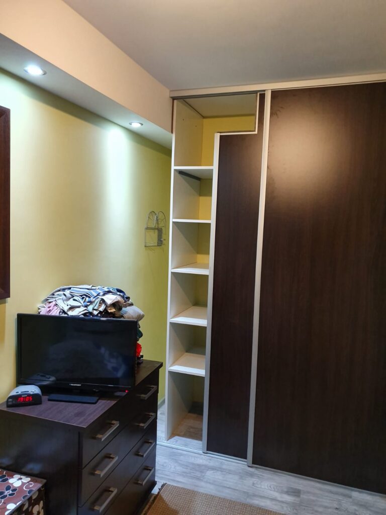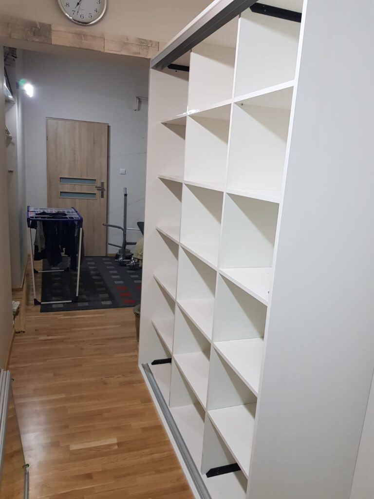 Closets: we can create custom closets in different design variants and different arrangements. The front of the closets can be made from two or more sliding doors. The front of the doors can also be assembled with mirrors, a white plate, a plate in wood color, or glass painted in RAL color.